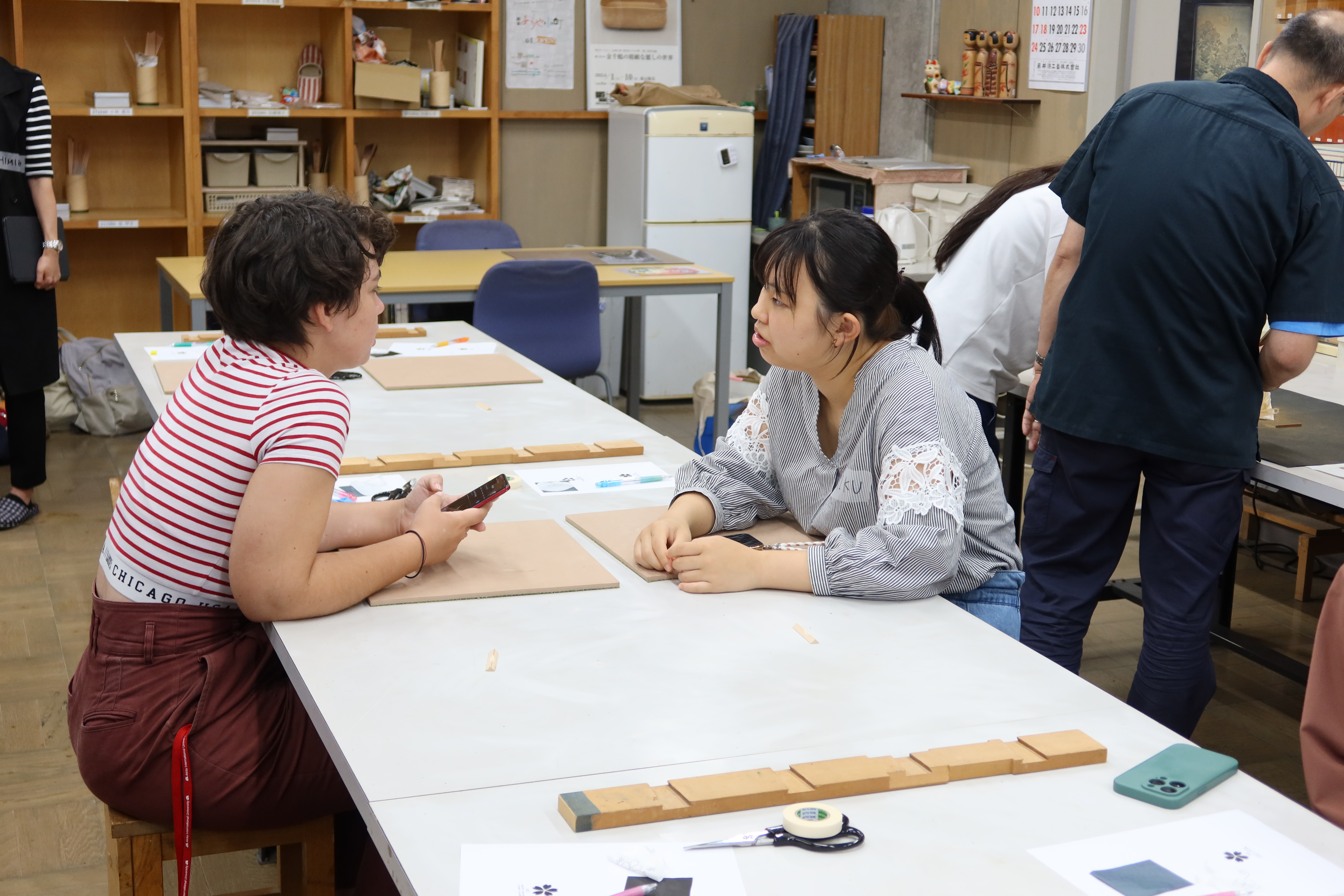 制作に集中している静寂な雰囲気から、笑顔と多言語が飛び交うにぎやかな雰囲気に変わり、学生たちはより一層交流を深めていました。