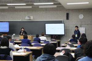 大学概要説明では、本学の概要や今年度の入試情報などについて説明し、参加者は真剣な様子で聞き入っていました。