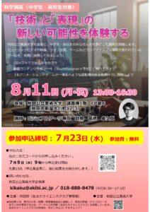 今年度も、あきたサイエンスクラブ科学講座(美大コース)を開講します。
