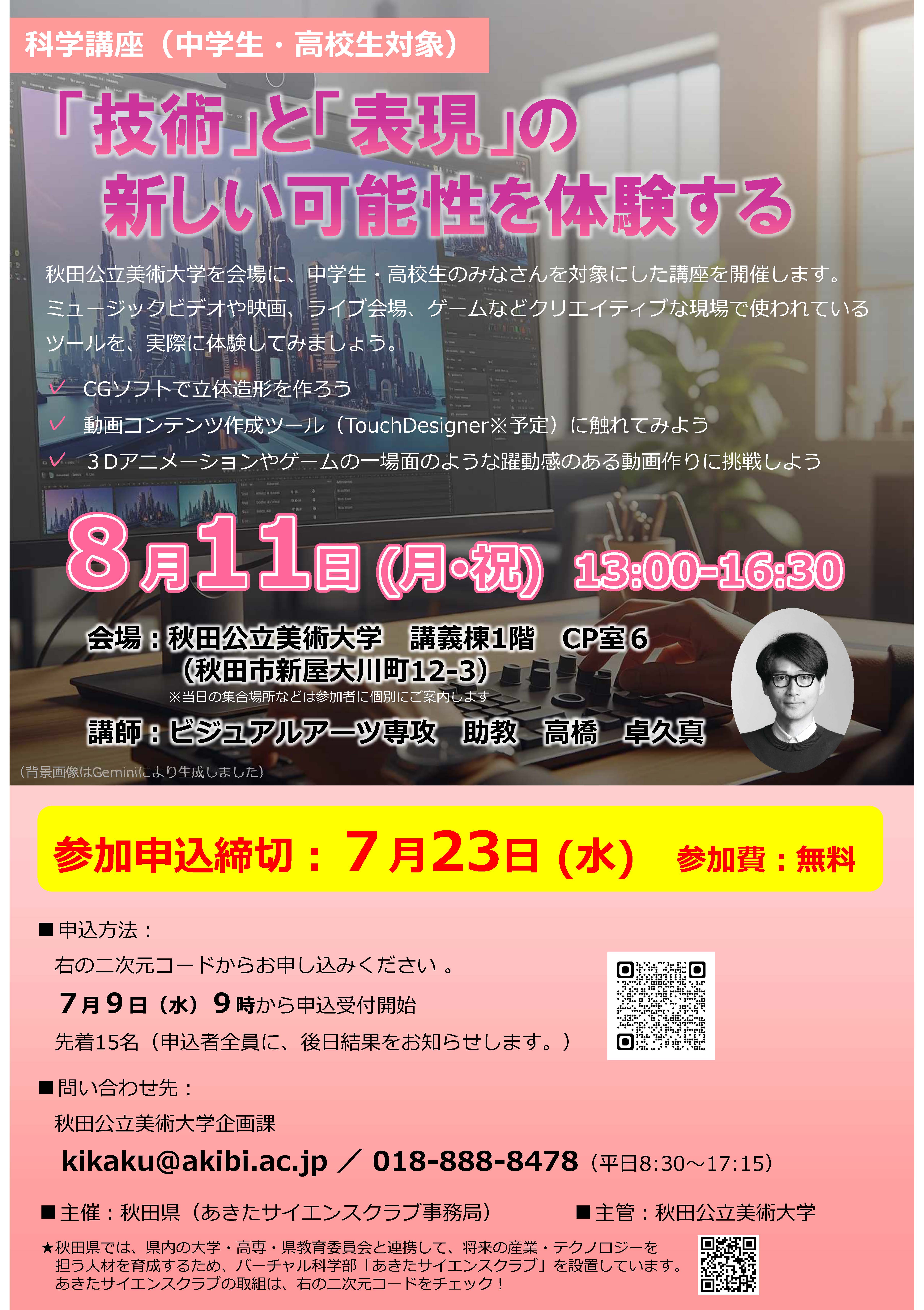 問合せ:秋田公立美術大学企画課(TEL:018-888-8478 Email:kikaku@akibi.ac.jp)