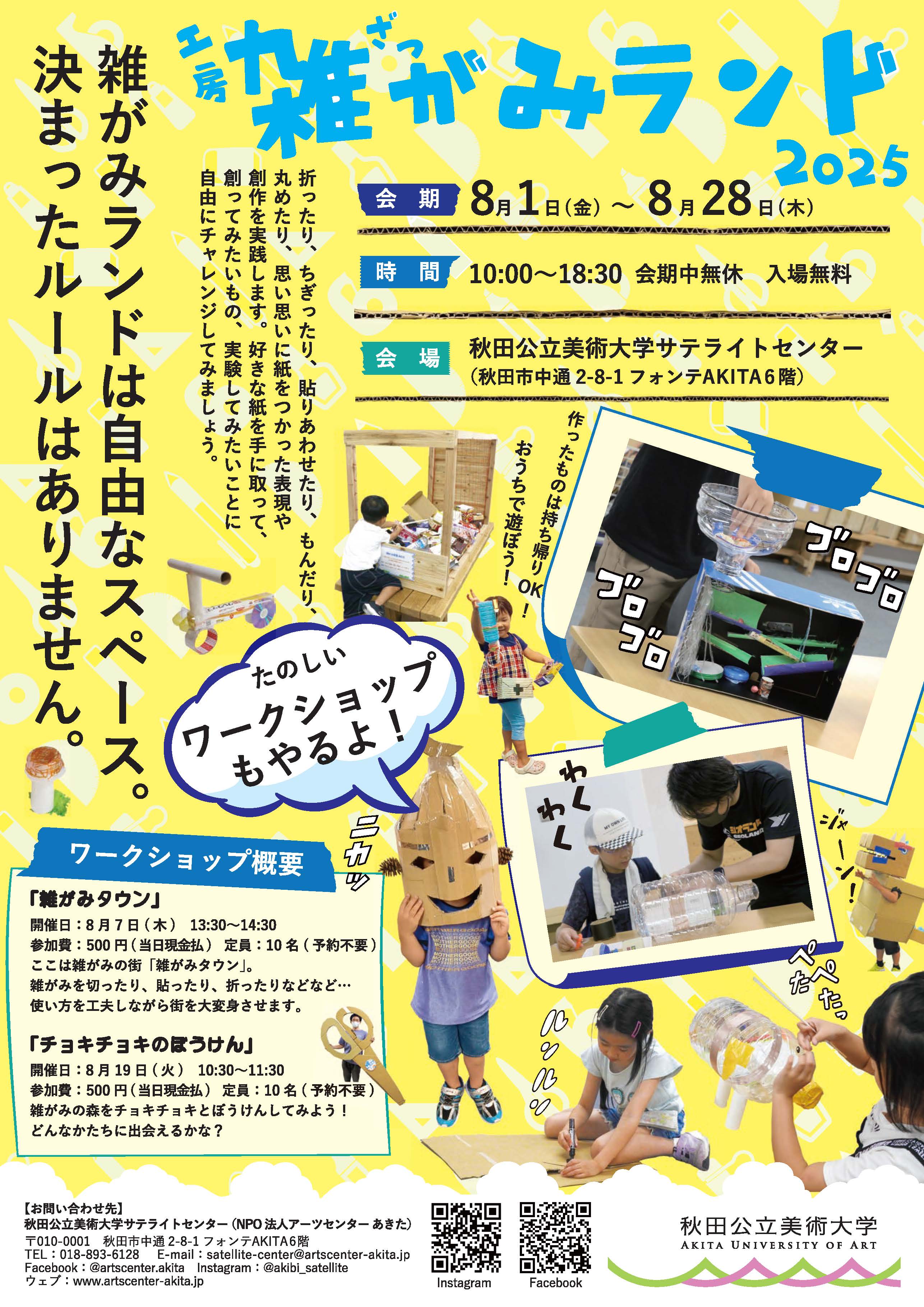 秋田公立美術大学サテライトセンターにて、「工房 雑がみランド2025」を開催します。