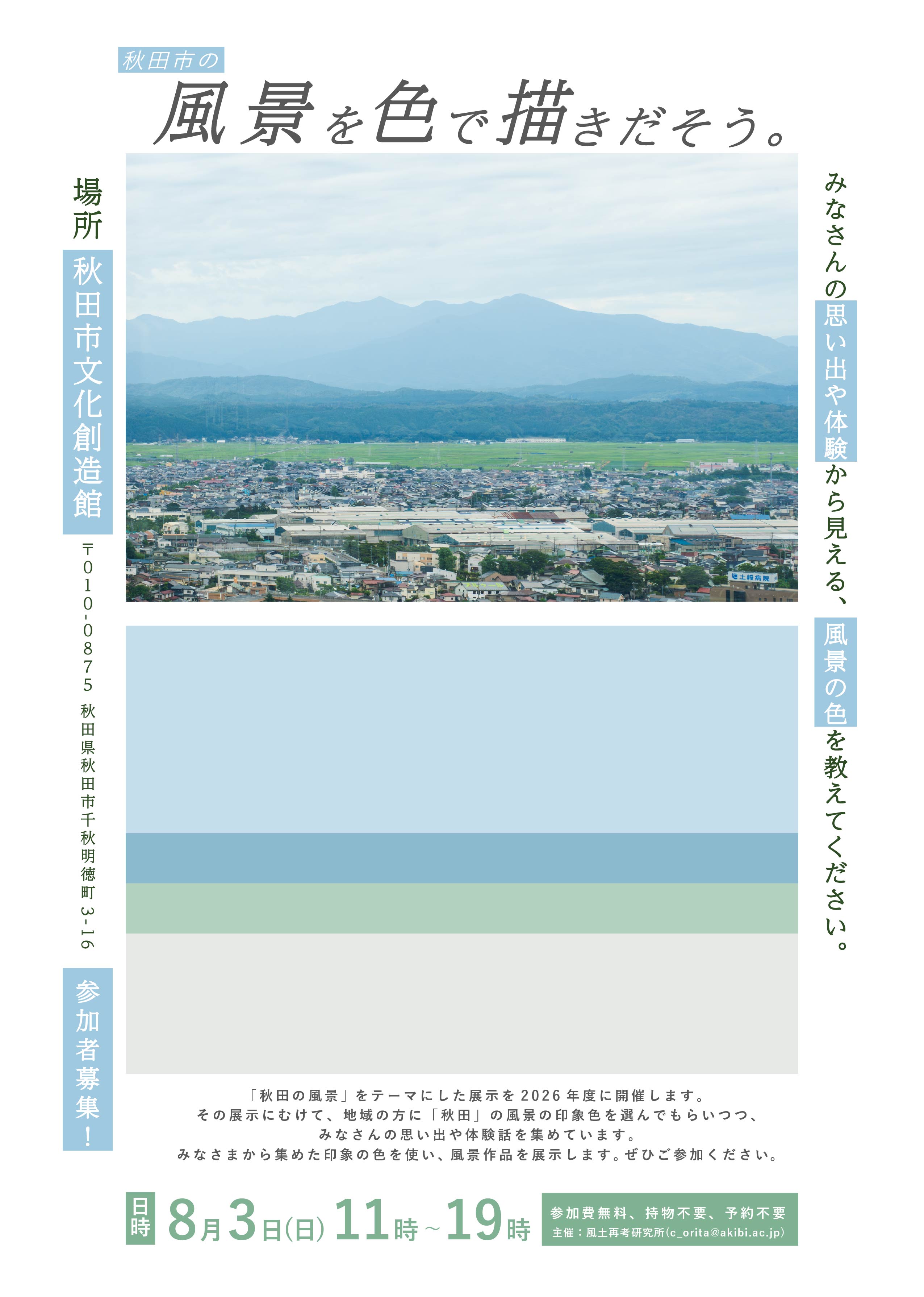 本学景観デザイン専攻折田助手によるワークショップ「秋田市の風景を色で描きだそう。」を開催します。