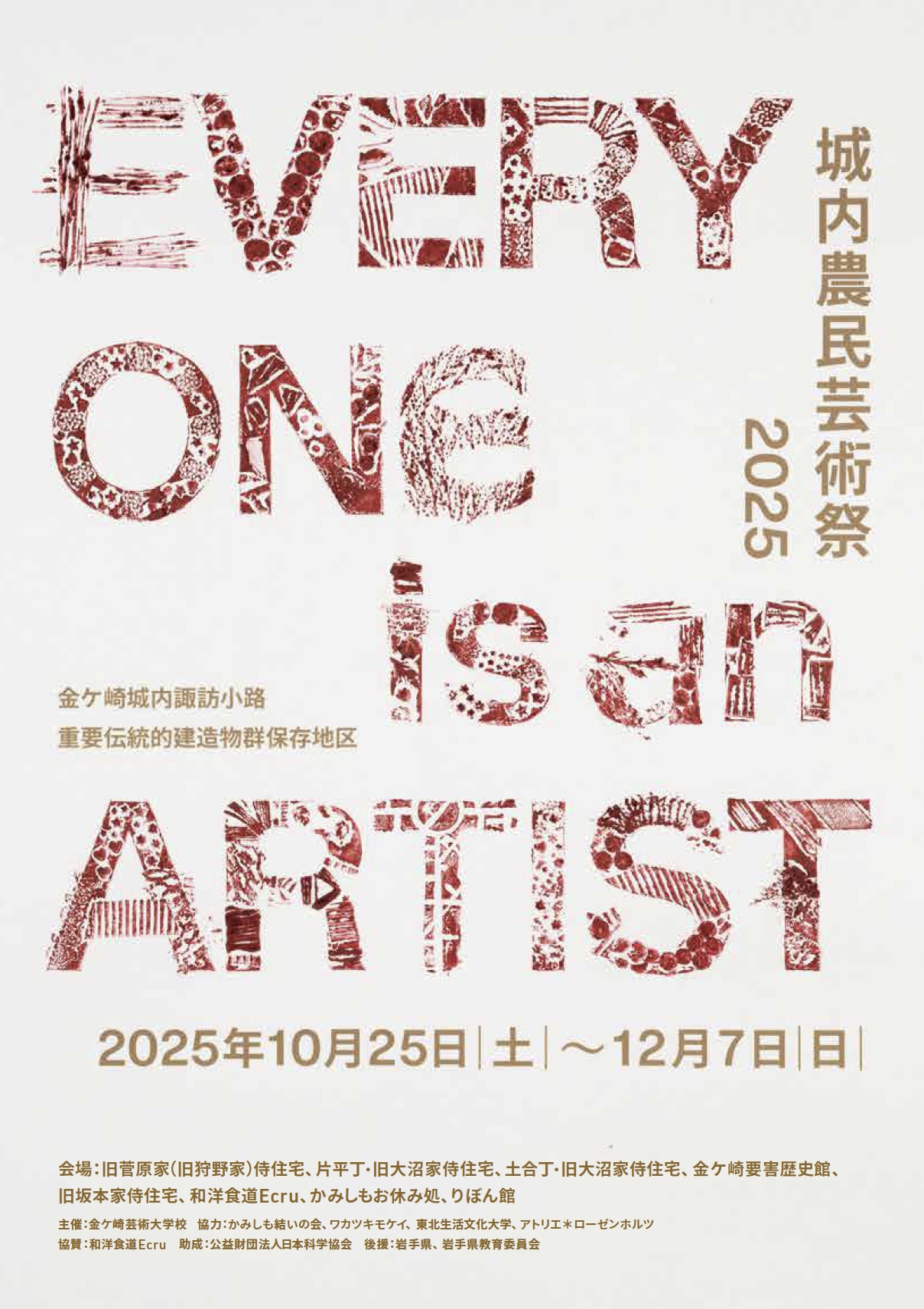 本学アーツ&ルーツ専攻村山修二郎教授が、岩手県で開催される「城内農民芸術祭2025」に作品を出展します。
