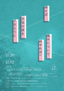 本学の教員と卒業生が展覧会「例えば(天気の話をするように痛みについて話せれば)」に出展します。また、会期中にはアーティストトークや読書会も開催されます。詳細はホームページからご確認ください。